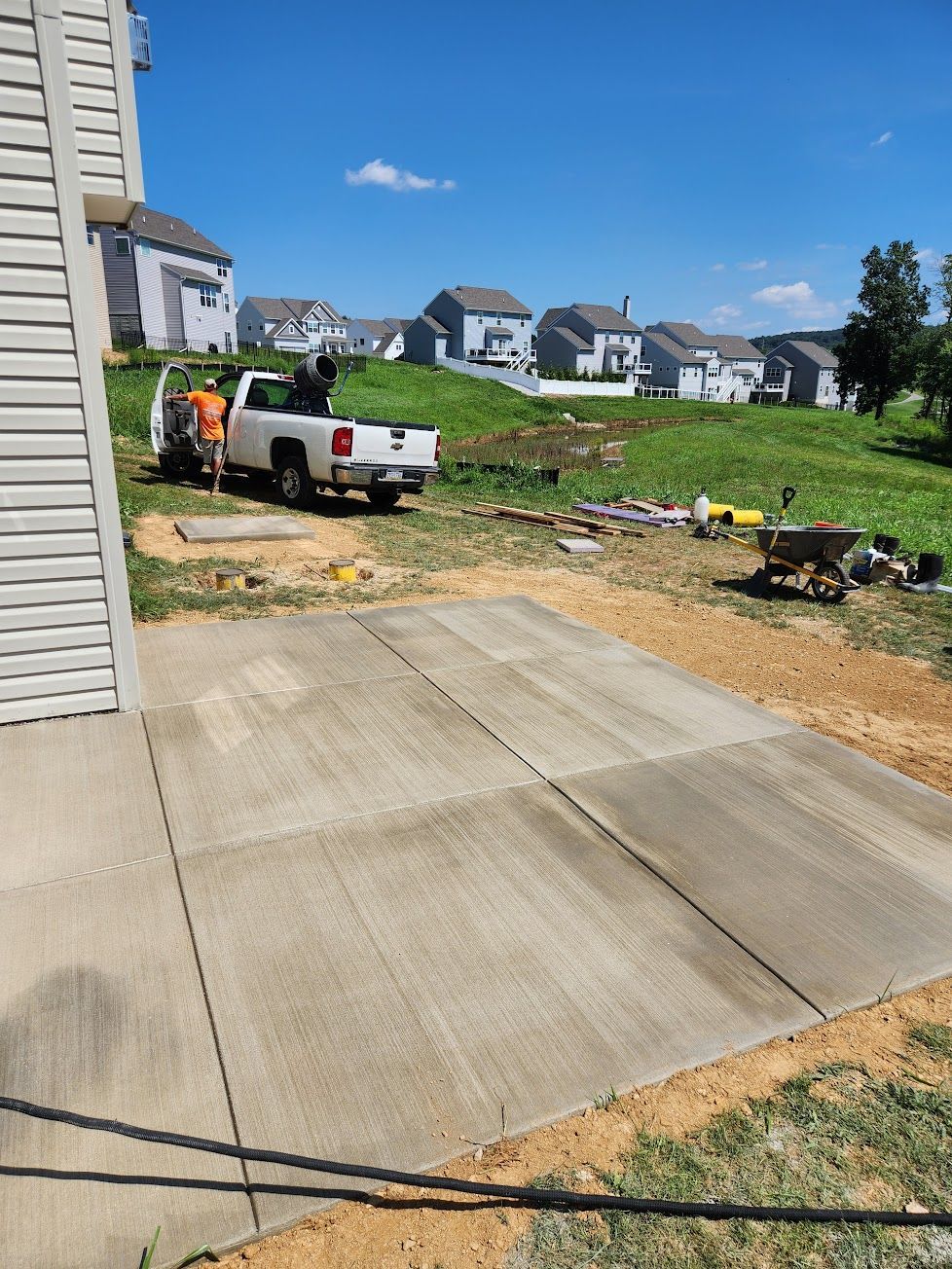 Concrete pad with footing for future deck